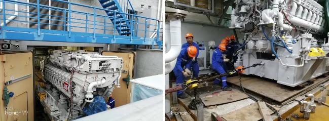 柴油機抵達現場后,工程公司與業主、施工單位、廠家嚴格執行作業方案和施工計劃,施工單位各作業隊最大可能平行施工,在2018年6月19日具備啟動條件,提前進度計劃要求6天,在返廠維修最短記錄基礎上,又創造了一個回場后復裝的最短記錄!