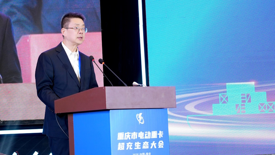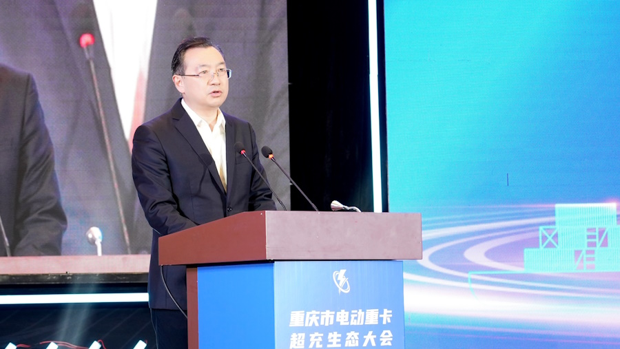 重慶市經濟和信息化委員會黨組成員、副主任涂興永在致辭中表示,重慶正在全力打造具有國際競爭力的智能網聯新能源汽車之都,重卡商用車是重要組成部分。今年1—10月,全市商用車產量42.3萬輛,占全國商用車產量的14.1%。目前,全市營運貨車保有量約22萬輛,其中重卡12萬輛,電動重卡約2700輛。為解決電動重卡“續航焦慮”,重慶市經濟和信息化委員會作為行業主管部門正在從3個方面加力推動電動重卡超充生態發展。