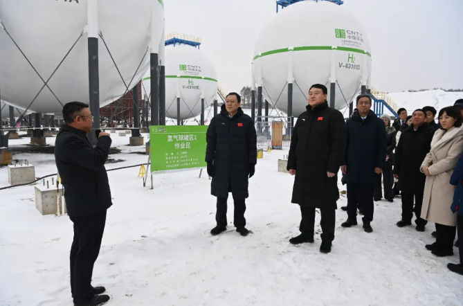 12月28日,出席遼源市第九屆人民代表大會第五次會議的人大代表和出席政協遼源市第九屆委員會第五次會議的政協委員,走進天楹風光儲氫氨醇一體化項目建設現場開展集中視察