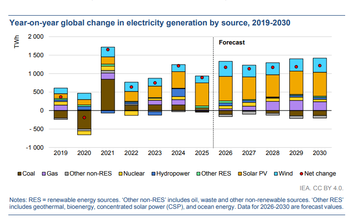 國際能源署(IEA)6日發(fā)布《2026年電力市場展望》,預(yù)測在2026-2030年,全球發(fā)電量將達(dá)到多個新的里程碑。