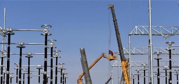 ↑11月6日,國(guó)家電網(wǎng)陜西省電力公司的工作人員在陜北風(fēng)電基地750千伏集中送出工程定靖750千伏變電站進(jìn)行隔離開(kāi)關(guān)均壓環(huán)組裝。 新華社記者劉瀟攝