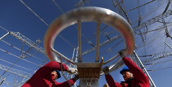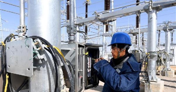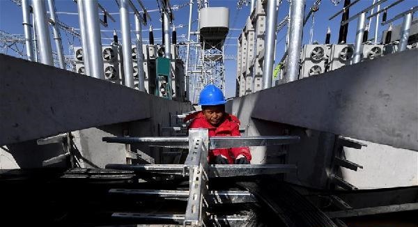 上圖為國(guó)家電網(wǎng)陜西省電力公司的工作人員在陜北風(fēng)電基地750千伏集中送出工程定靖750千伏變電站進(jìn)行二次回路查線。