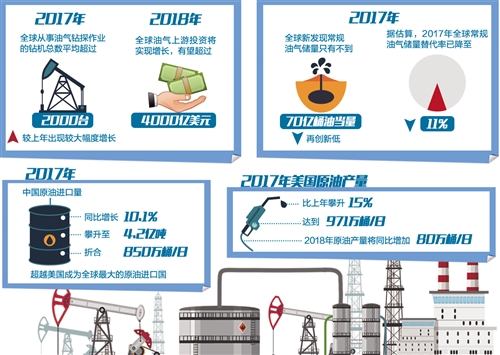2014年油價下跌以來,為應對低油價,全球主要石油公司普遍采取向核心業務聚焦策略,大幅削減投資,作業鉆井量明顯下降。2017年隨著油價逐漸回升,全球油氣勘探走出低谷,鉆機作業量“止跌回升”。統計顯示,去年全球從事油氣鉆探作業的鉆機總數平均超過2000臺,較上年出現較大幅度增長。2017年美國頁巖油氣并購金額達到220億美元。勘探工作量和并購金額的增長,表明全球油氣勘探迎來了春天。業內預計,2018年全球油氣上游投資將實現增長,有望超過4000億美元。